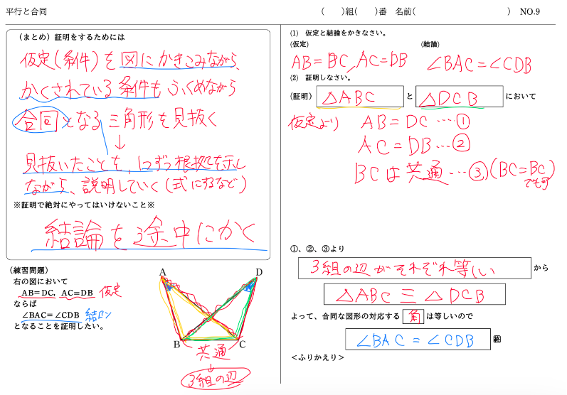 予習問題を提示する場面では、単に問題を配付するのではなく、ポイントを示すことで、家庭で自分の考えを準備してくる助けとなる。プリントが整理できない児童への支援にもつながった。