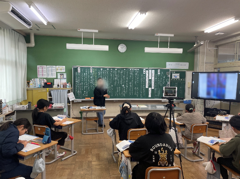 Zoomを活用し、板書・授業者・児童全体を同時に配信することで、授業の思考の流れや学級の雰囲気が遠隔地にも伝わるよう工夫した。特に、板書の構成や児童の発言を即時に可視化できた点は、参観する教員にとって授業改善の具体的な手がかりとなった。
